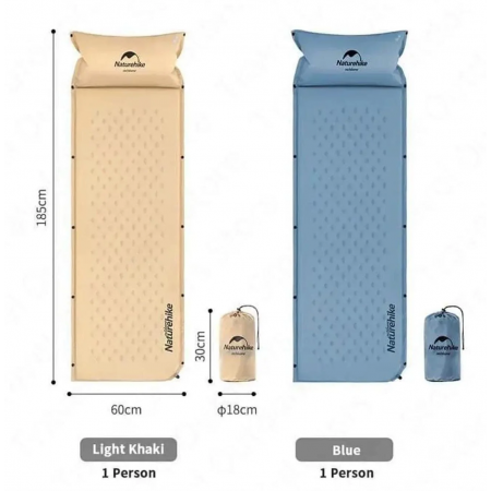 Naturehike kendiliğinden şişen minder ve yastık, hafiflik ve konforu bir araya getirir. Bu model PVC kaplamalı polyesterden yapılmıştır. Doğada rahat bir şekilde dinlenmenizi sağlayacaktır. Mat, tamamen rahatlamanızı ve dinlenmenizi sağlayacak doğru anatomik şekli korur, balık tutma, avlanma veya yürüyüş gezileri sırasında kullanım için mükemmeldir. Bu modelin ayırt edici bir özelliği, iki paspasın birbirine bağlanabilmesidir. Yamalar dahildir. UYARI!!! Delaminasyonu önlemek için pompalamayın.